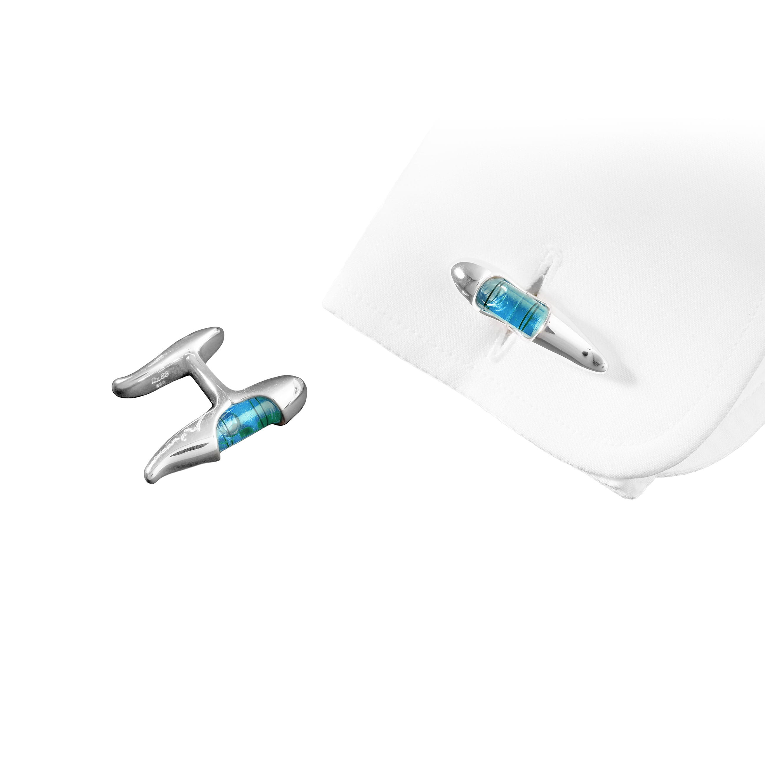 Embrace the harmony of work and leisure with the Level Cufflinks, where precision meets playfulness in a design inspired by the engineer's spirit level. These cufflinks are a celebration of balance, accurately indicating a horizontal line not just on the tool, but in the