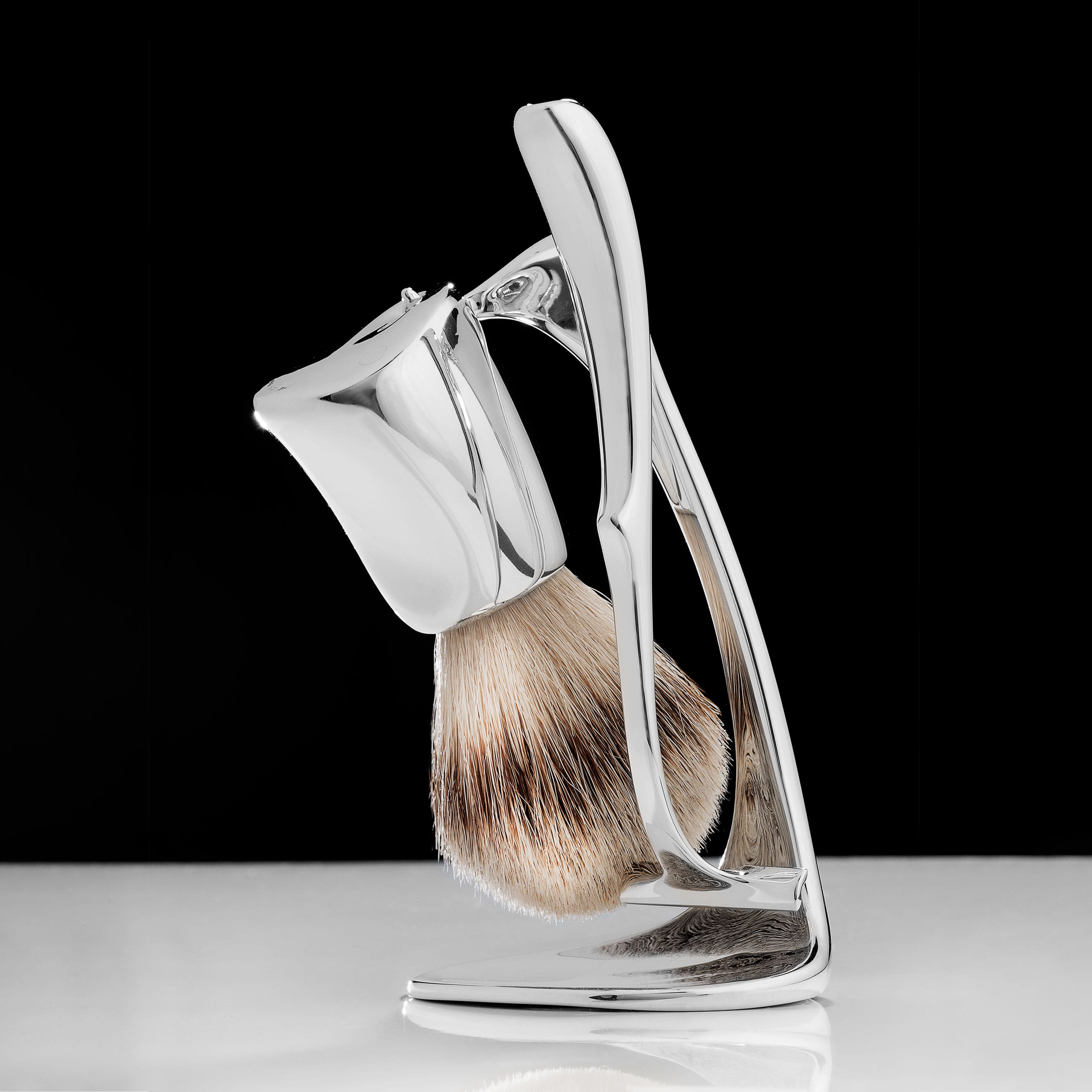 The MINAS Shaving Set is a rare fusion of function and design - a sculptural object that brings elegance to the everyday ritual of grooming. The one-of-a-kind stand is engineered to hold both the shaver and the pure squirrel hair brush with balanced precision and visual harmony.