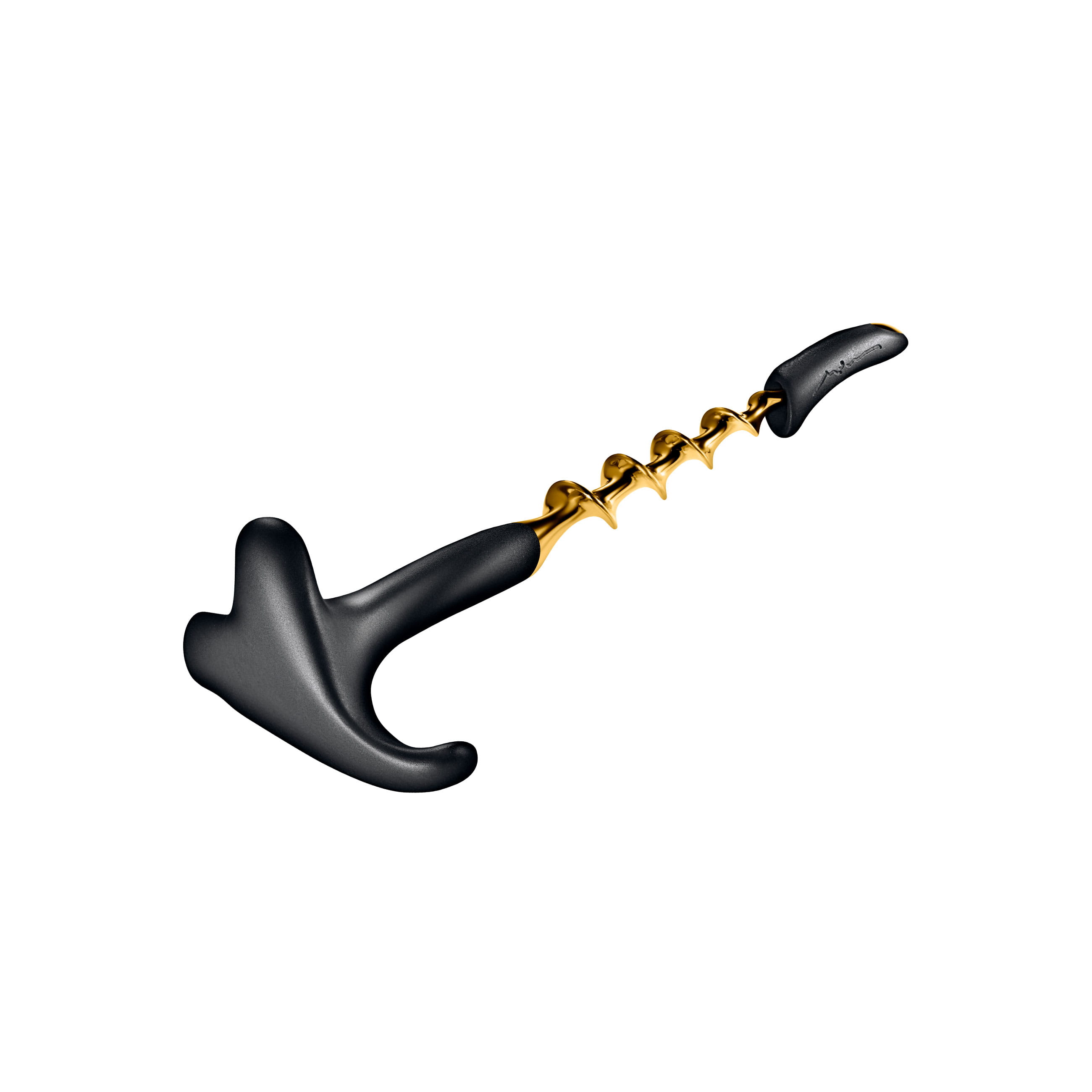 The Tire-Bouchon corkscrew transforms a simple gesture into an act of sculptural elegance. Crafted from oxidized silver and adorned with a spiral of 18k yellow gold, its ergonomic form is designed for both precision and beauty. A collectible object that elevates the ritual of opening wine.