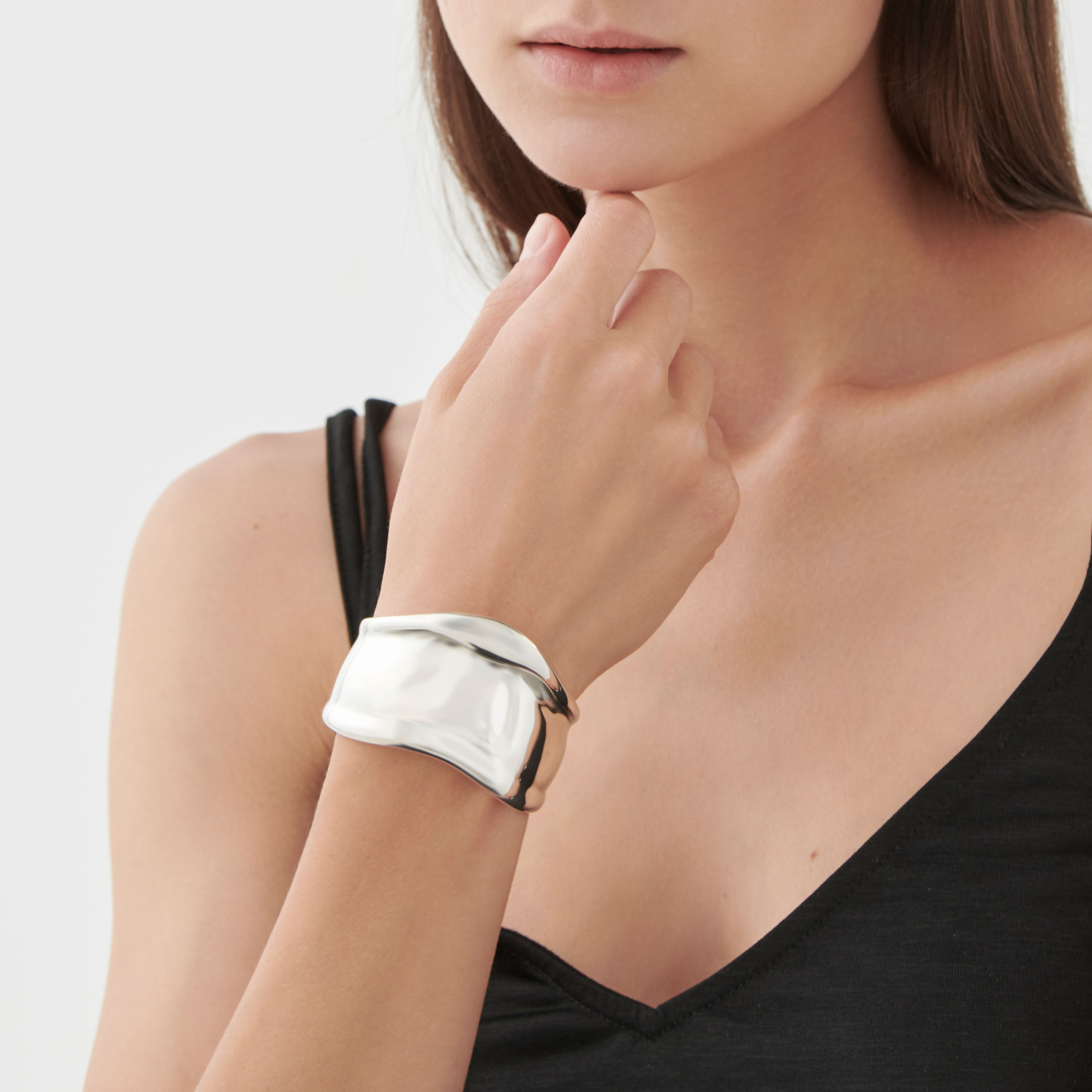 The Wrist Cuff is designed with an ergonomic shape that rests perfectly on the bones of the wrist, ensuring both comfort and elegance.